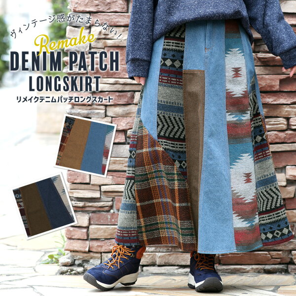 ◆商品について◆ 個性を醸し出す、リメイクしたような主役級パッチスカート柔らかいライトオンスデニムと温かみのあるジャカードやチェック、ツイード素材をミックスしたヴィンテージ感がたまらない可愛さ!縦に入った柄布とストンとしたシルエットでスッキリとした印象に。