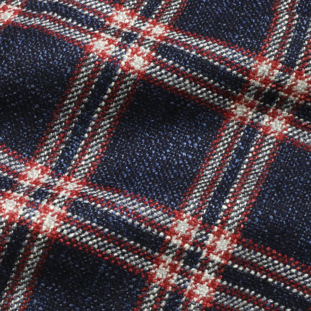 TAGLIATOREらしいメランジインディゴに華やかなレッドのタータンチェックを配したライトツィード生地はシルクを混紡することでほのかに光沢を感じさせる仕上がりになっており、落ち着きの中に潜ませる隠し味的色気という絶妙な仕事をしています。