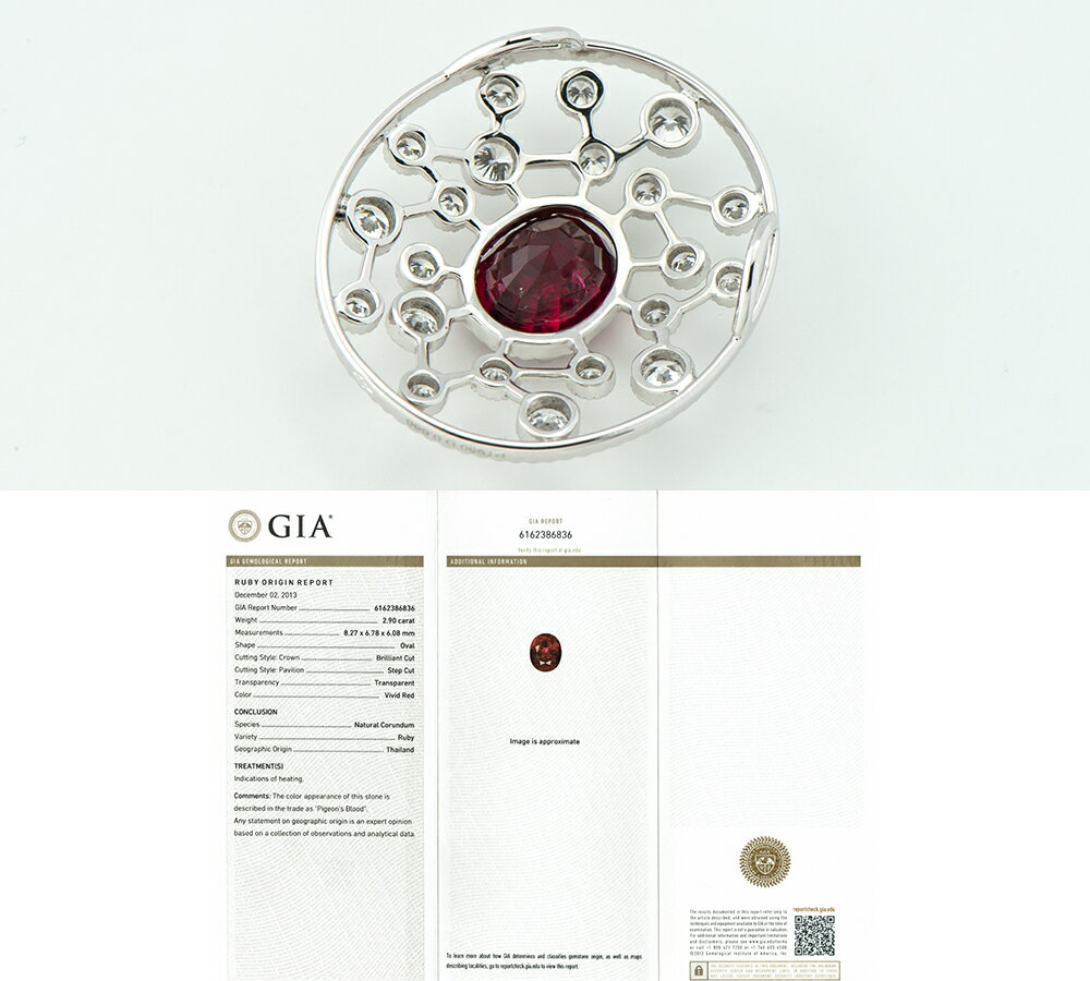 ※GIAレポートには「ピジョンブラッド(鳩の血色)」の記載がございますが、現在は判定基準が変わっているためピジョンブラッドとなりません。