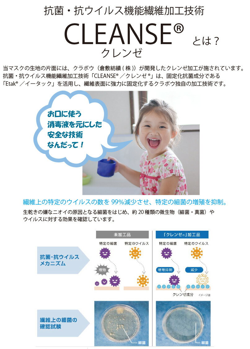 クレンゼ 抗菌マスク 日本製 マスク 送料無料 洗える 布マスク 抗ウイルス 抗菌 イータック 小さめ 大きめ 花粉 ピンク ホワイト ベージュ グレー ネイビー 色 レディース メンズ M L 生地 布 男女兼用 抗 ウイルス CLEANSE 春 夏 冷感 綿100% 肌に優しい クラボウ