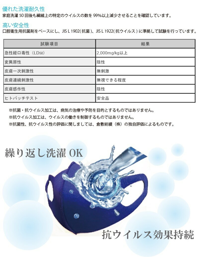 ウイルス減少確認素材使用マスク【ダブルクレンゼ 】しっかりカバー ウイルス対策 減少 抗菌 洗える 立体 マスク 耳が痛くならない マスク 日本製 個包装 人気 子供 女性用おしゃれ 安心 防臭 ウイルス 除菌 メンズ 大きめ あす楽 3980円送料無料 即納 個包装